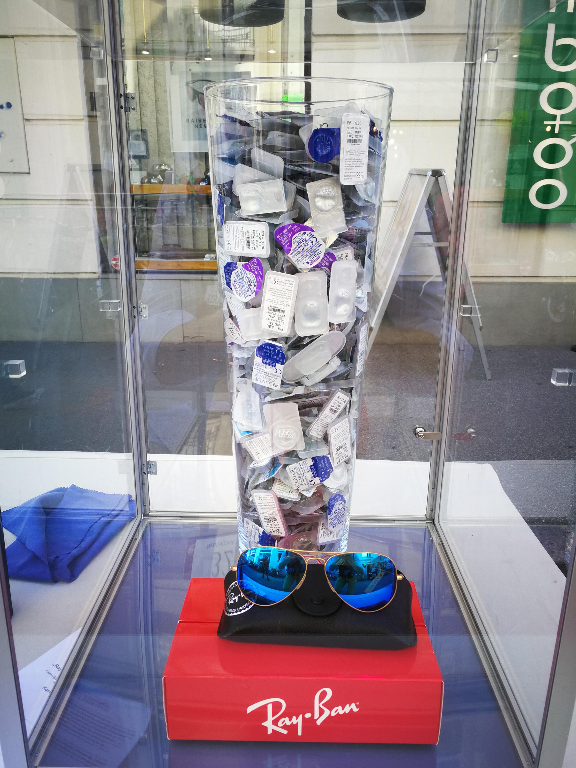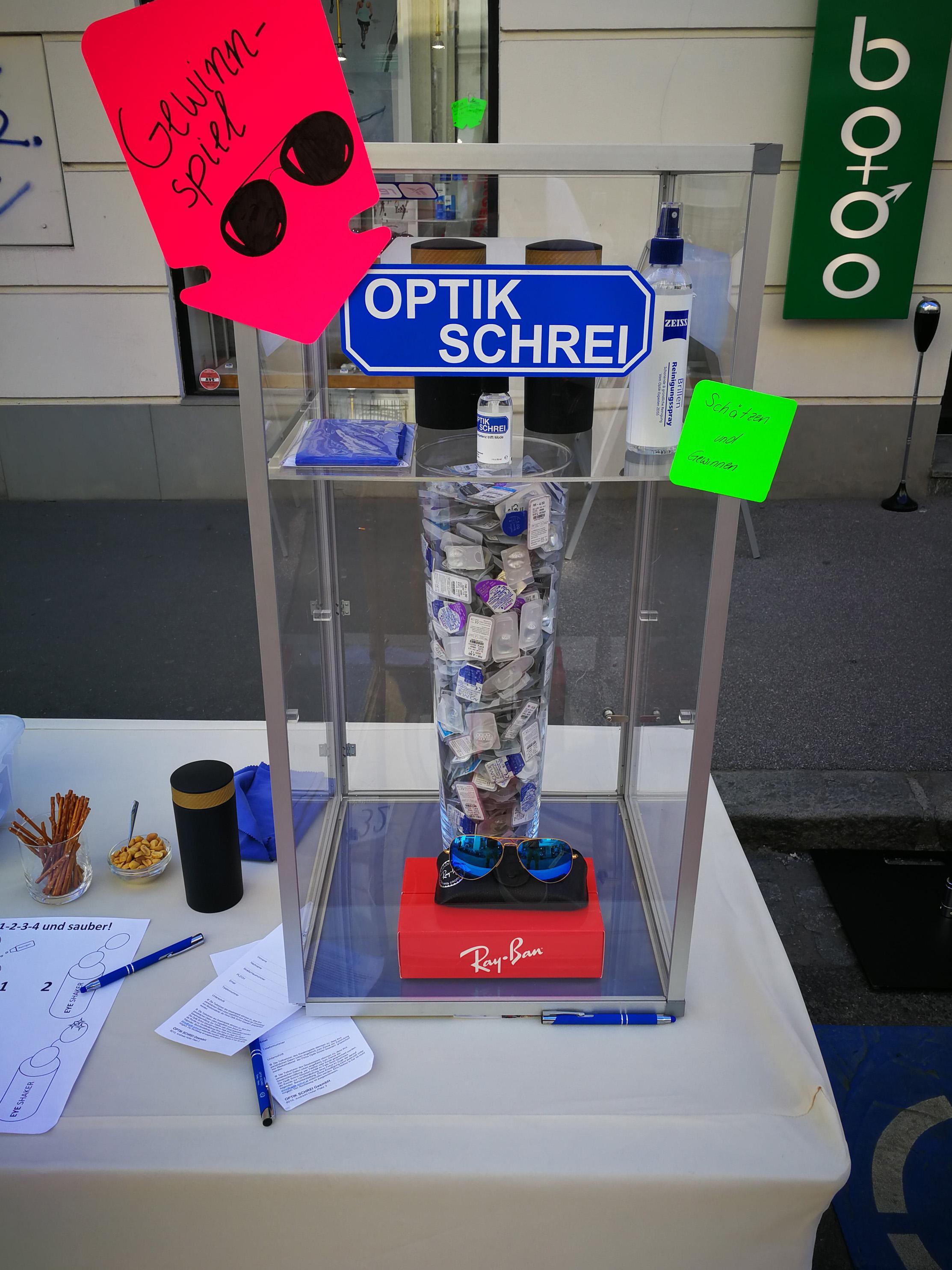 529 Kontaktlinsen - Beim Optik Schrei "GUESS'n'WIN"-Schätzspiel ging es als Hauptpreis um nichts Geringeres als eine Ray-Ban Sonnenbrille aus der aktuellsten Kollektion. Insgesamt wurden über 200 Schätzungen abgegeben. Zu erraten war die Anzahl der Kontaktlinsen in einem Glaskrug.
